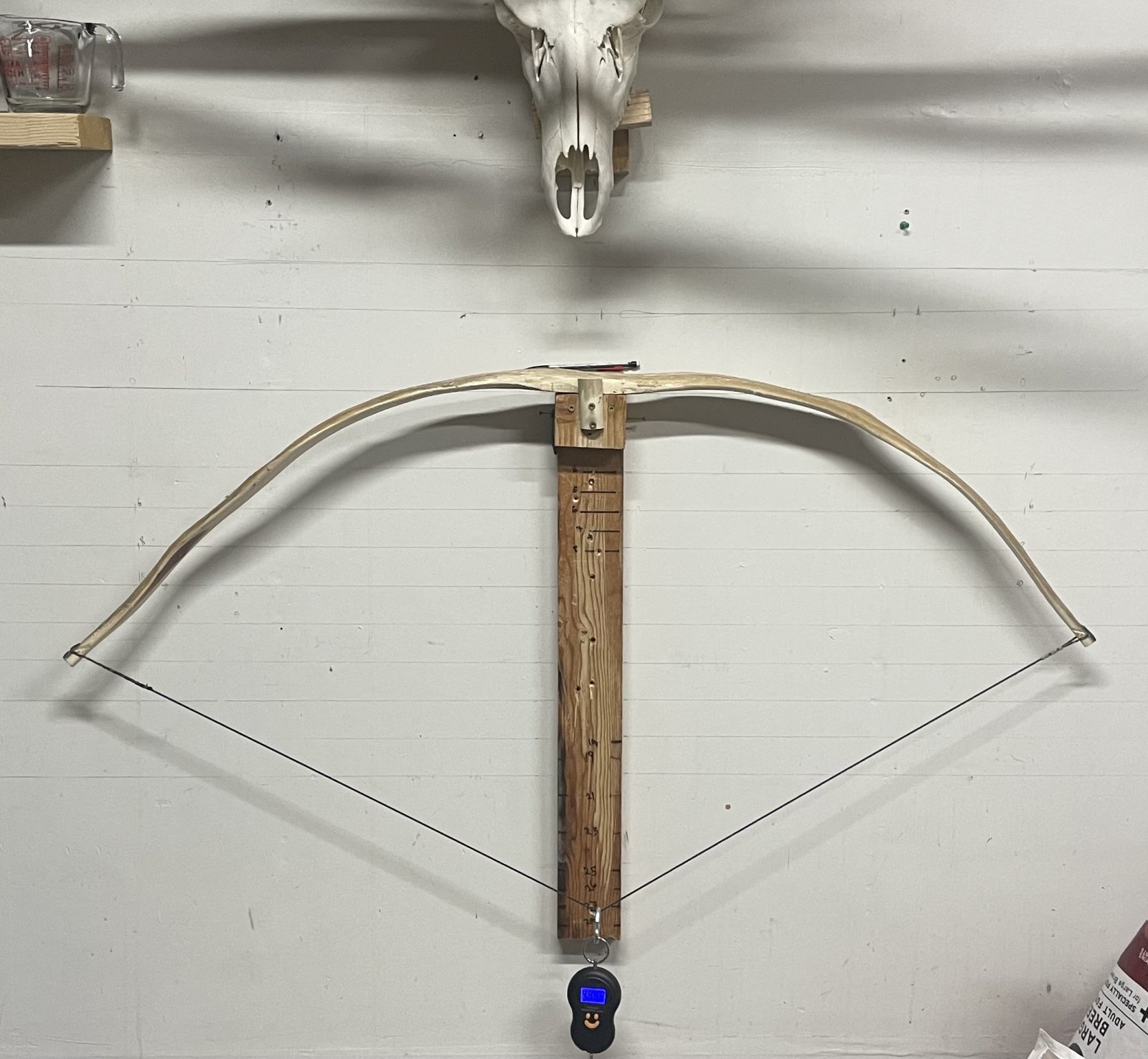 It's 60" ntn, another inch or so tip to tip. It has four layers of sinew. Currently pulling about 43# @ 25".