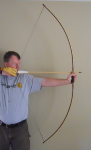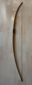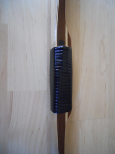 Just finished this up a couple days ago. Ash backed ipe flatbow. 64" ntn, 56#@27". Bulbous handle with a new grip style for me... wrapped leather lacing. Black ebony tip overlays, with round inlaid horn arrow pass. Zero set... absolutely none... even when freshly unbraced. I love ipe. It takes such a small amount to make a bow, and it's tougher than a coffin nail.